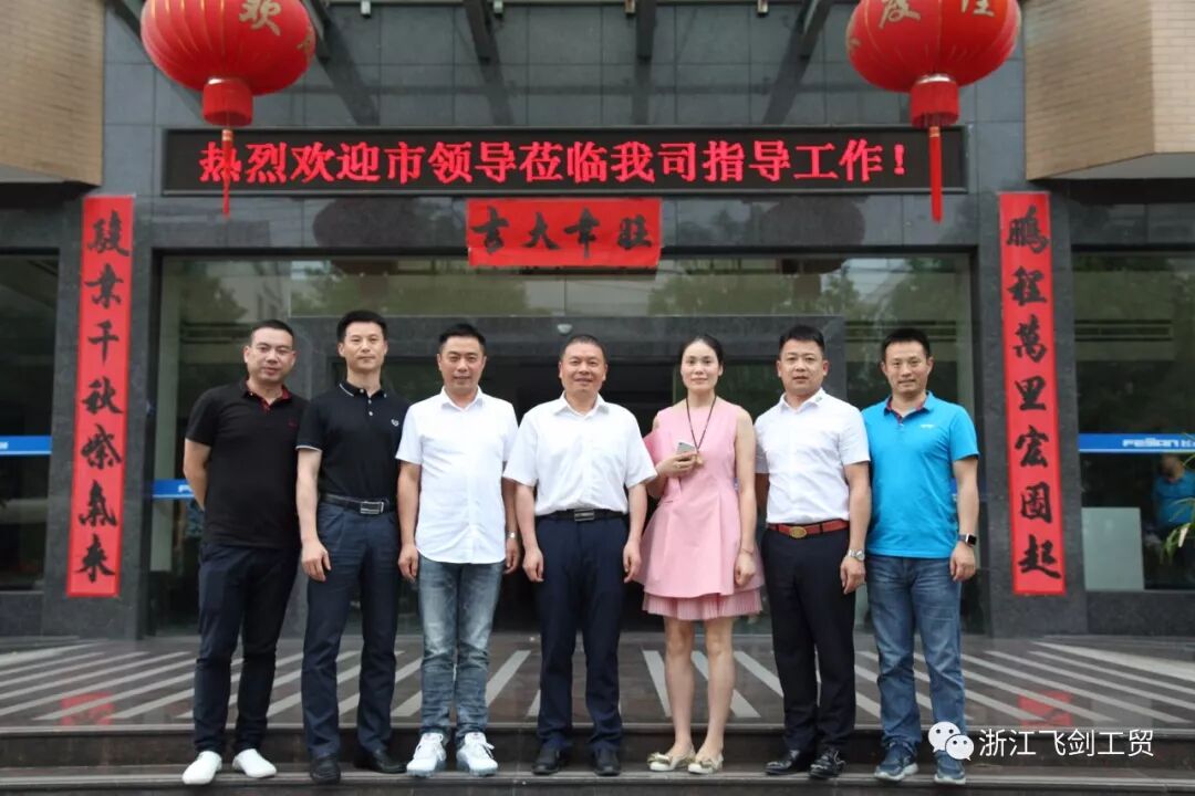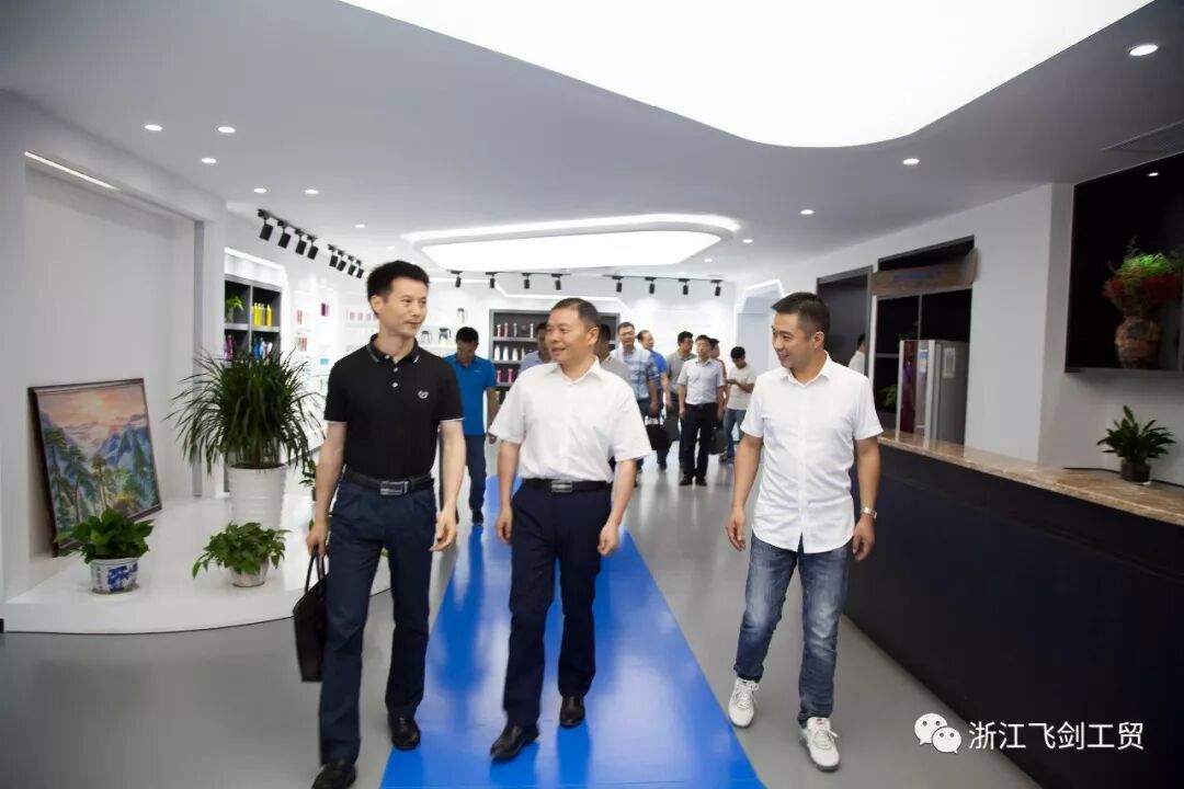 5月22日,永康市市长朱志杰,副市长廖育奎率市府办、金融办、经信局、财政局、国土局、规划局、经济开发区等部门主要领导到浙江飞剑工贸有限公司调研工作。