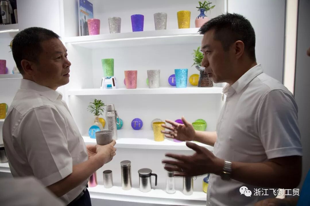 在公司样品间,朱市长重点了解了浙江飞剑的最新产品——钛晶杯,在深入剖析了钛晶杯的市场前景和研发方向后,提出了“让更多的消费者了解新兴材料——“钛”,快速进入市场,倡导品质生活”的寄语,并殷切期盼浙江飞剑能在当前钛产业已形成先发优势的基础上再突破,为企业发展及永康“六金”产业转型升级带来新动力。