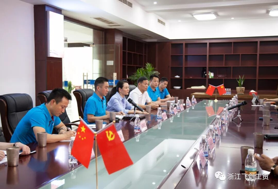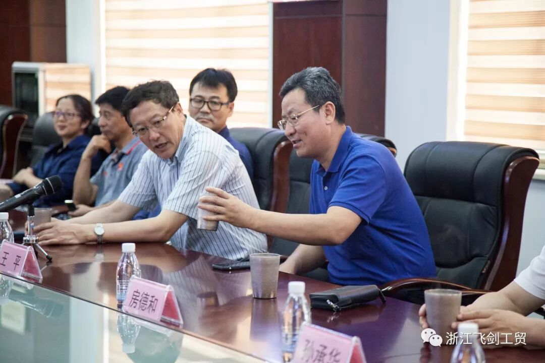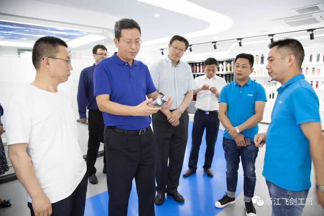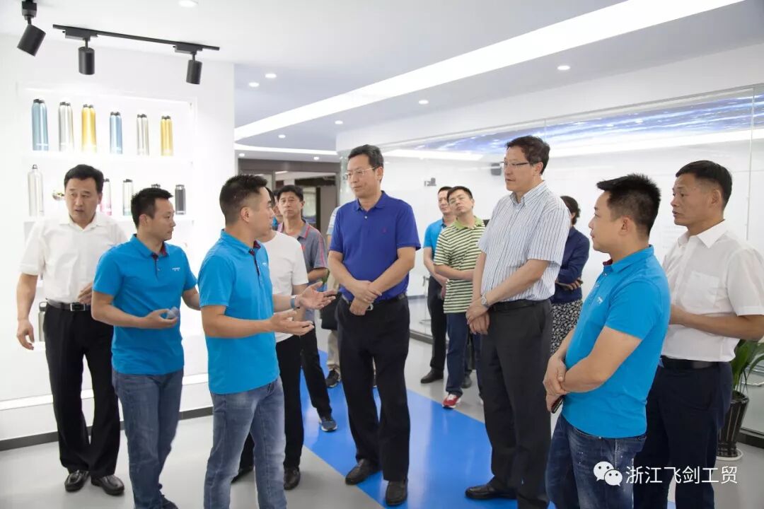 视察了我司样品间,听取了飞剑公司的企业历程、未来发展规划后,调研组对我司在体育产业中的发展给予高度赞扬。浙江飞剑长期致力于体育事业的发展,并在2017年成为浙江省体育用品制造业示范企业。