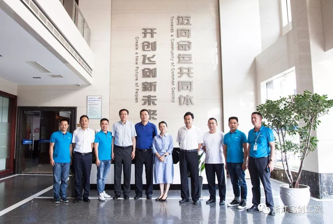 2018年6月14日,中国体育用品业联合会主席李桦、国家体育总局体育器材装备中心副主任王平等领导专家一行来到浙江飞剑科技有限公司,调研体育产业的发展,永康市政府副市长卢轶、体育局局长林震陪同参加了此次调研活动。