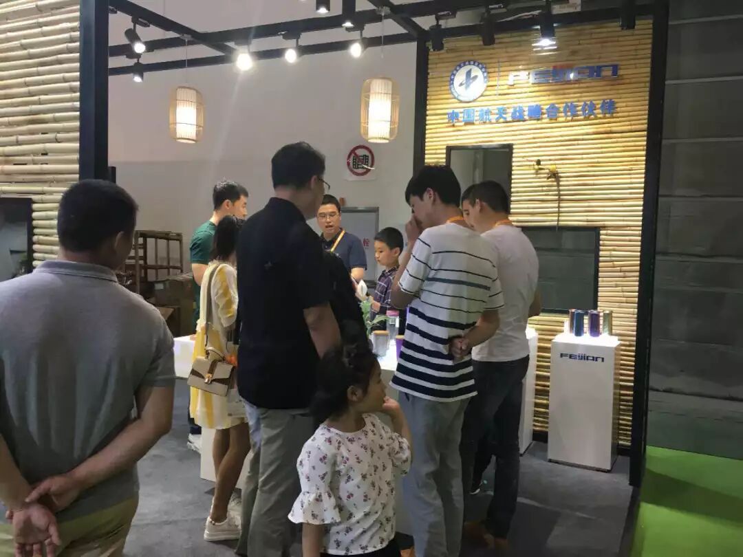 这次展会上,飞剑科技的云动系列、五谷系列产品,都吸引了众多观众驻足观看、五颜六色、晶彩炫动、外观时尚的钛杯,好多观众还是第一次看到。俨然成为茶博会上一道亮丽的风景线。