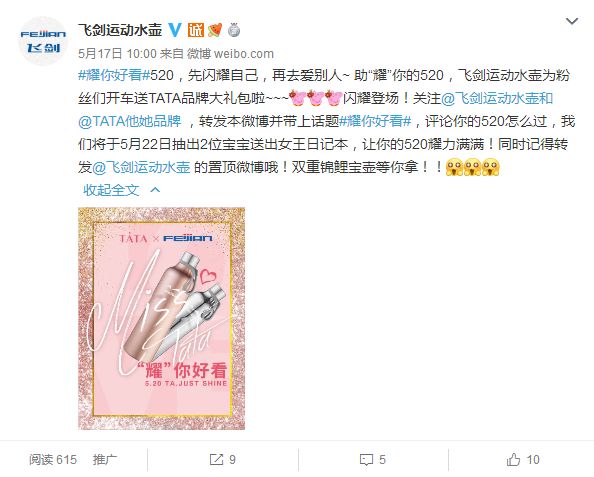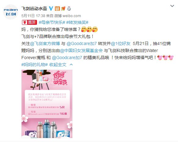 我们微博@飞剑运动水壶 母亲节的微博转发活动还未截止,新的活动又接踵而至!